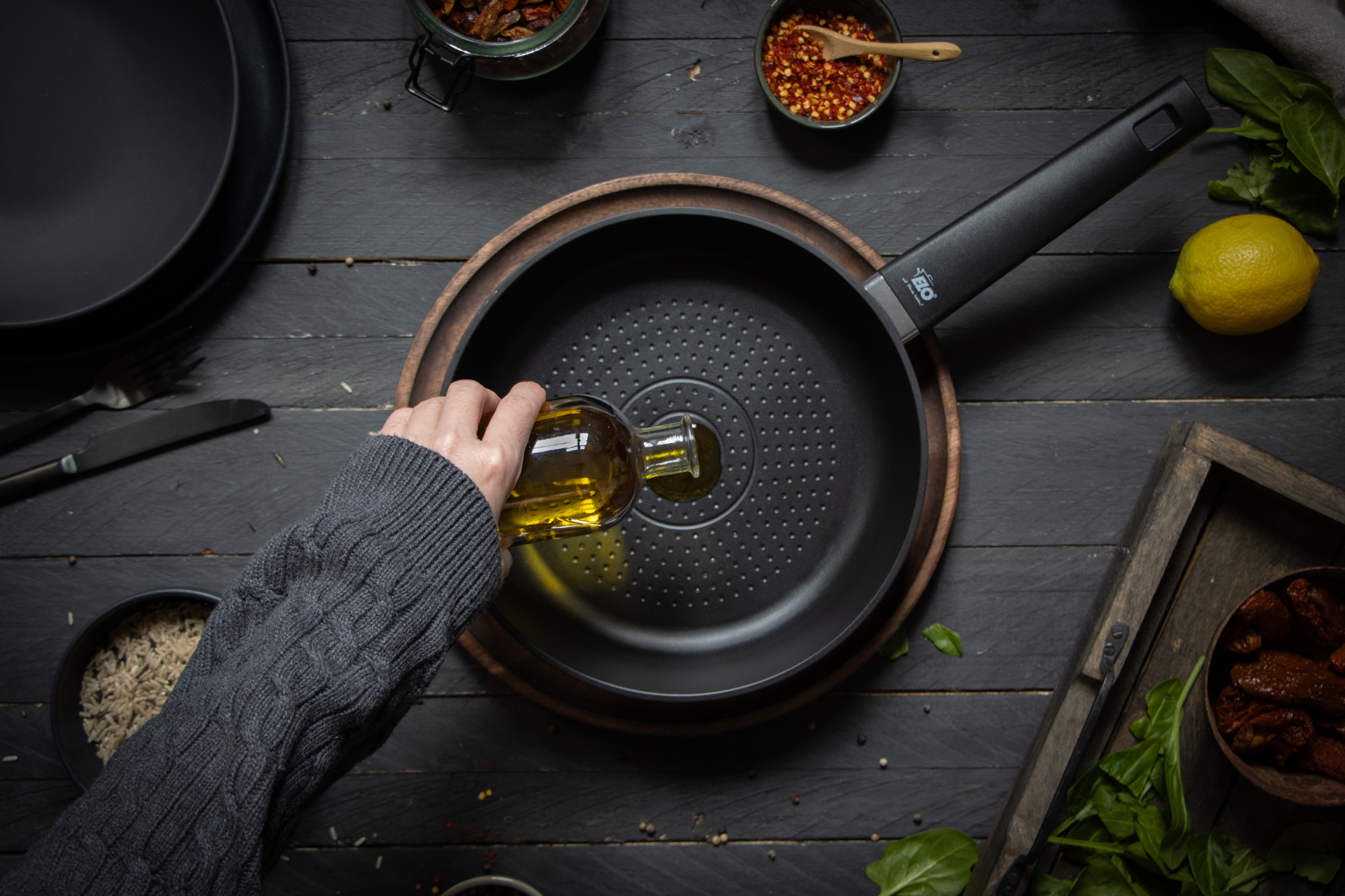 Knusprig braten ohne Anbrennen – und dabei Fett einsparen? Mit der smarten Bratpfanne von ELO kein Problem. Die innovative Wabenstruktur verhindert ein Anbrennen, während die Öl-Dosierringe dabei helfen, das Fett gleichmäßig zu verteilen. Die Antihaftversiegelung ist frei von PFAS, kratzfest und lässt sich easy reinigen. Für alle Herdarten geeignet, auch für Induktion.
